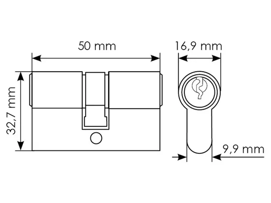 50C PC, ключевой цилиндр (50мм), цвет - хром